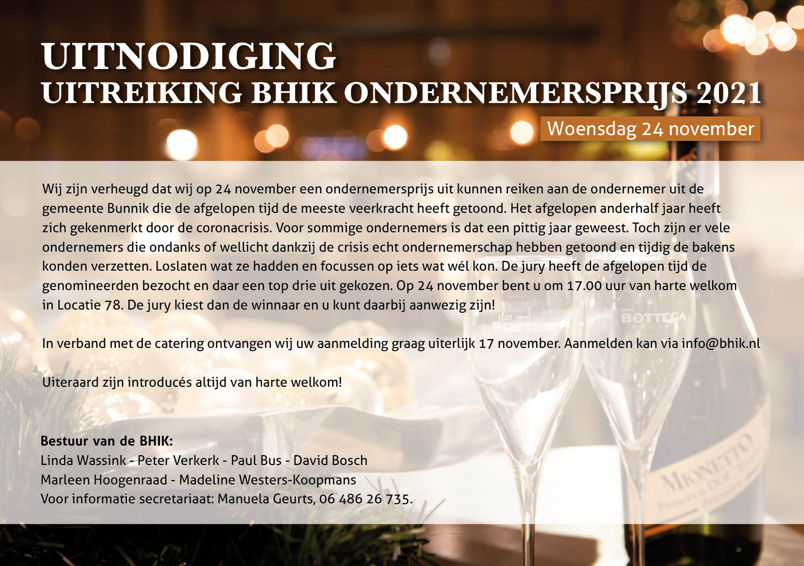 Uitreiking ondernemersprijs 24 november om 17.00 uur
