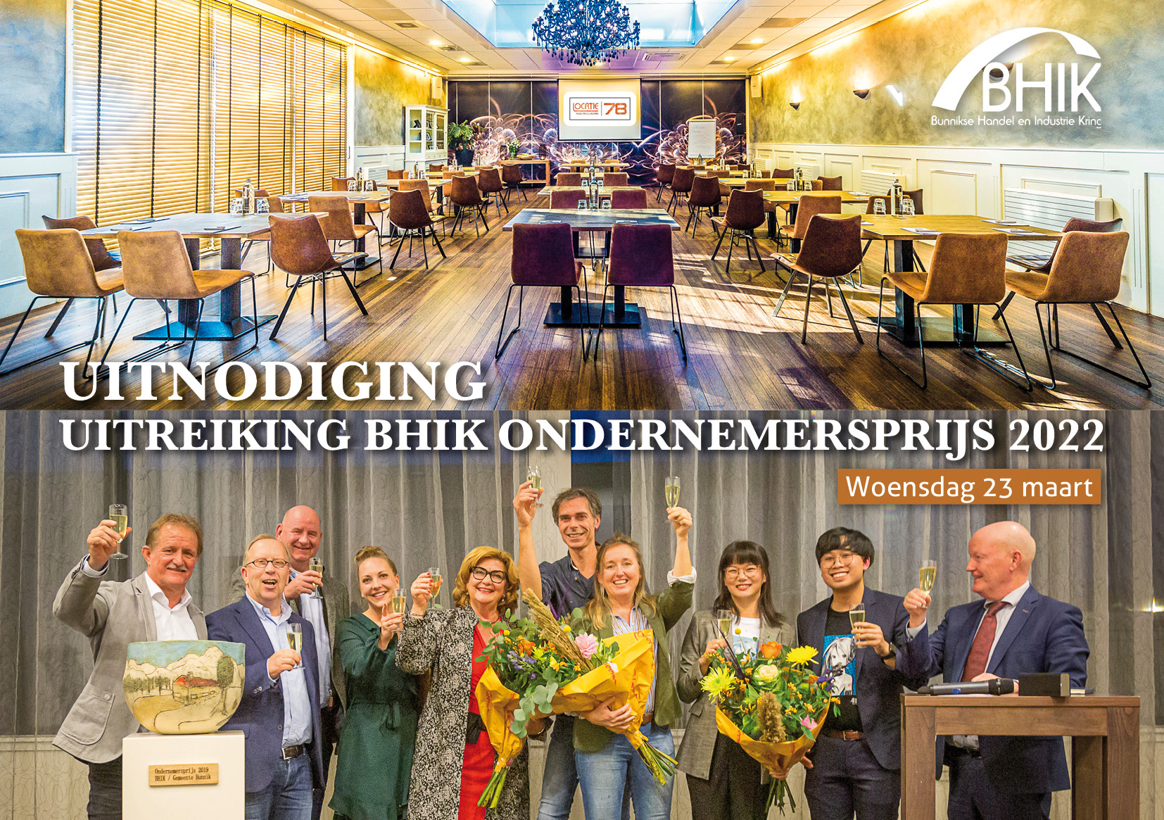 Wij zijn verheugd dat we de ondernemersprijs kunnen uitreiken op 23 maart. Bent u erbij? Aanmelden kan tot uiterlijk 16 maart via onderstaand formulier.